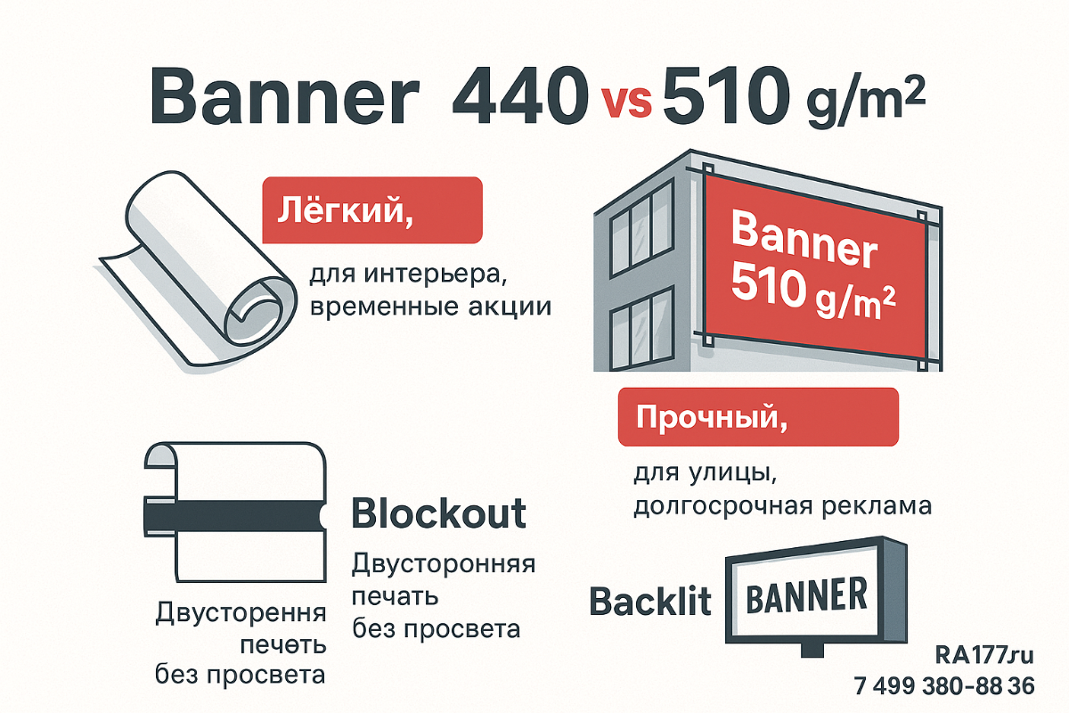 Для коротких промо и акций внутри помещений — баннер 440 г/м².