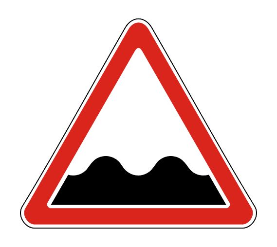 Дорожный знак 1.16 "Неровная дорога" предупреждает водителей о приближении к участкам дороги с неровностями, такими как ямы, выбоины или волнистости покрытия. Эти участки могут возникать как из-за аварийного состояния дороги, так и в результате дорожных работ. В населенных пунктах знак устанавливается за 50-100 м до начала проблемного участка, а вне населенных пунктов — за 150-300 м. Этот знак помогает водителям заранее снизить скорость и быть готовыми к маневрам, чтобы избежать повреждений подвески автомобиля, колес и шин на неровностях.