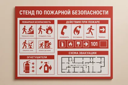Когда речь идет о безопасности, мелочи не выбирают — каждый стенд по пожарной безопасности (план эвакуации, инструкции, знаки) должен быть изготовлен точно по нормам и быть видимым в любой ситуации. Мы печатаем такие стенды на негорючих материалах, с устойчивым покрытием и соответствующей яркостью.