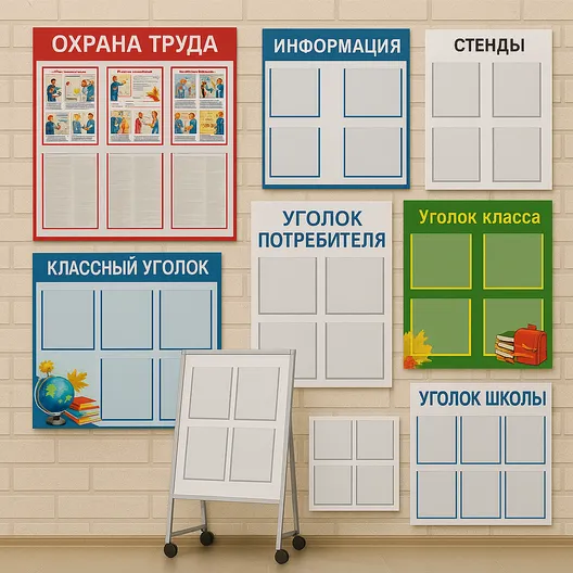 В образовательных учреждениях стенды должны быть яркими, заметными и безопасными. Мы создаём школьные/детсадовские стенды из безопасных материалов, с интересной графикой, карманами для уведомлений, расписаний и творческих работ.