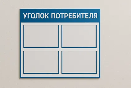 Обязательный стенд для магазинов, кафе, салонов и сервисных компаний. По закону он должен содержать сведения о компании, правила обслуживания, книгу отзывов и жалоб, лицензии и сертификаты.