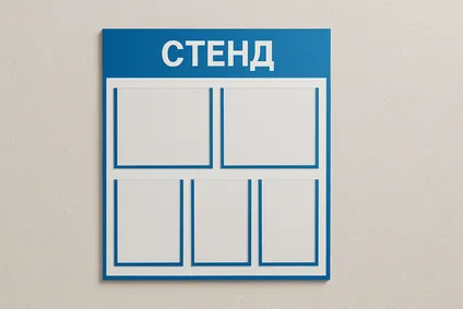 Заказать стенд в Москве у нас можно с учётом всех требований: от разработки макета до монтажа. Мы используем сертифицированные материалы — ПВХ, акрил, алюминиевые профили, влагостойкие покрытия. Карманы выполняются из прозрачного пластика, что обеспечивает долговечность и удобство обновления информации.